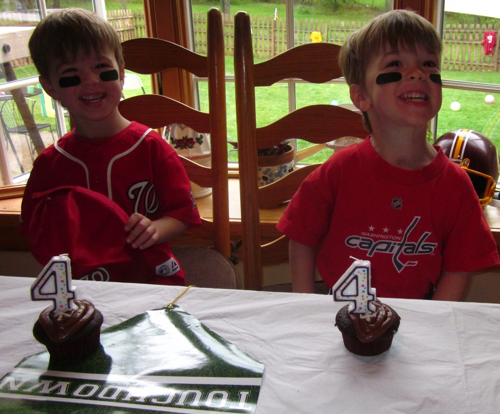 The boys helping put all the names on the pennants a few days before |